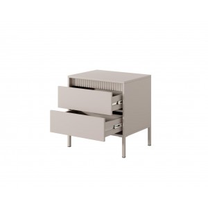 Der Nachttisch SENSO ist ein elegantes und funktionelles Möbelstück, das sich perfekt in moderne Inneneinrichtungen einfügt. Sein einzigartiger Charakter wird durch die geriffelten Fronten unterstrichen, die aus langlebigem MDF in einer stilvollen beigen Farbe bestehen. Diese subtilen Details verleihen dem Möbelstück eine außergewöhnliche Eleganz und bilden ein harmonisches Ganzes, das sich in das minimalistische Design einfügt.