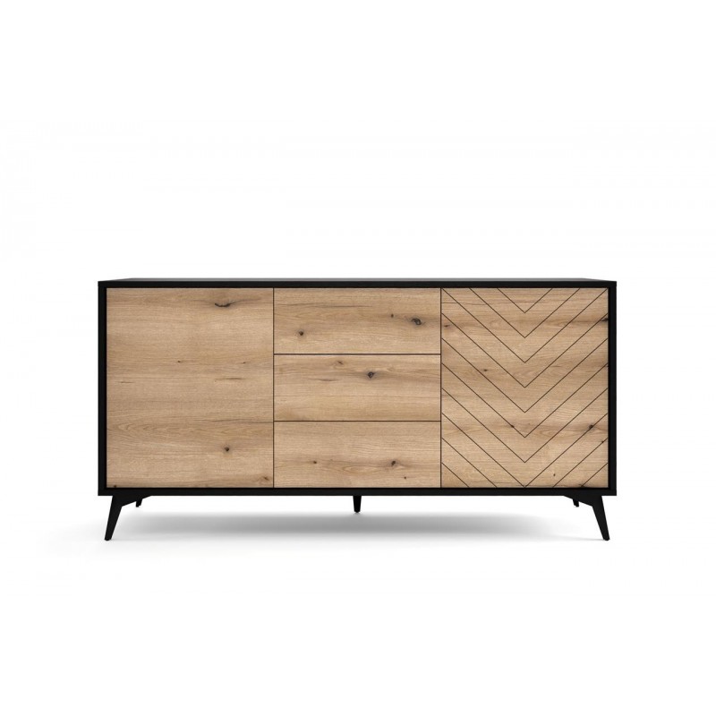 Große Kommode mit Schubladen DIAMOND 154 cm / Eiche evoke + schwarz matt