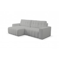 Ecksofa MASINA weiß gesteppt mit Schlaffunktion und Bettzeugcontainer