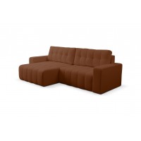 Modernes, gestepptes, braunes MASINA-Ecksofa mit Bettzeugablage und Schlaffunktion