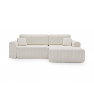 Kord-Ecksofa LINEA weiß - elegant mit Schlaffunktion und Bettzeugfach