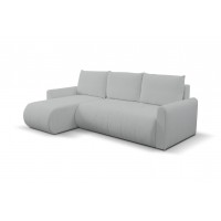 Mehrzweck-Ecksofa SPRENTO hellgrau in Boucle-Stoff mit Schlaffunktion und Bettzeugfach
