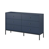 Kommode Molly 6 Schubladen Dunkelblau - Moderne Sideboard mit Schwarz Metallbeinen 154 cm