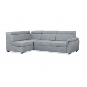 RAVINI ausklappbares graues Ecksofa mit verstellbaren Kopfstützen, gesteppter Rückenlehne und Schlaffunktion