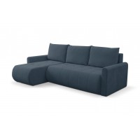 Mehrzweck-Ecksofa SPRENTO dunkelblau in Chenille-Stoff mit Schlaffunktion und Bettzeugfach