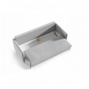 Bequem, stilvoll und kompakt, ist das Sofa perfekt für kleine Räume. Das skandinavische Sofa Belis hat eine Schlaffunktion und ein geräumiges Bettzeugfach. Das Möbel hat eine einfache, klassische Form, mit praktischen Armlehnen an den Seiten und 3 sehr bequemen Kissen an der Rückseite. An der Basis des Sofas befinden sich sehr solide Metallbeine. Das stilvolle Sofa ist aus hochwertigem Polyurethanschaum und gewellten Federn hergestellt, so dass sich das Möbelstück auch bei längerem Gebrauch nicht verformt.