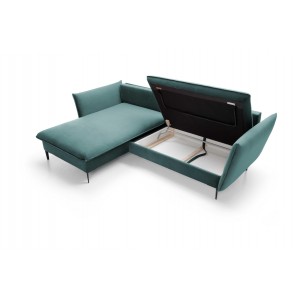 Das Ecksofa ROSSA verbindet elegantes Design mit Alltagstauglichkeit. Der Komfort der Nutzung wird durch gewellte Federn und Schaumstoff gewährleistet. Das Ecksofa verfügt über einen geräumigen Bettkasten und eine komfortable Schlaffunktion, wodurch es sich sowohl für das Wohnzimmer als auch für das Gästezimmer eignet.