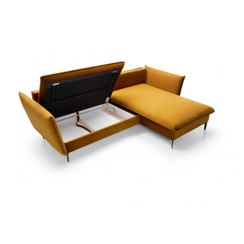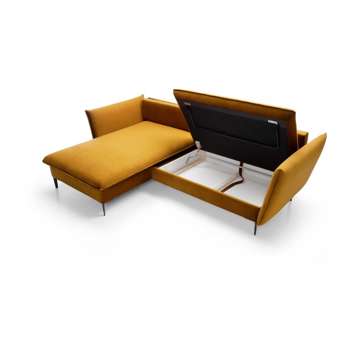 Das Ecksofa ROSSA verbindet elegantes Design mit Alltagstauglichkeit. Der Komfort der Nutzung wird durch gewellte Federn und Schaumstoff gewährleistet. Das Ecksofa verfügt über einen geräumigen Bettkasten und eine komfortable Schlaffunktion, wodurch es sich sowohl für das Wohnzimmer als auch für das Gästezimmer eignet.