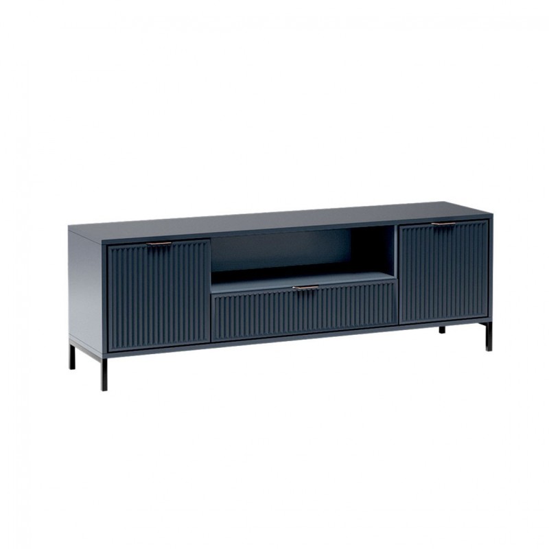Der NOMO TV-Schrank ist ein stilvoller und funktionaler zweitüriger Schrank mit geriffelten Fronten. Schwarze Metallbeine sorgen für Eleganz und Metallgriffe erleichtern die Bedienung. In der Mitte befindet sich eine Schublade, ideal zur Aufbewahrung kleiner Gegenstände. Der in den Farben Kaschmir und Indigo erhältliche TV-Schrank NOMO passt perfekt zum Interieur und verleiht ihm einen modernen Charakter.